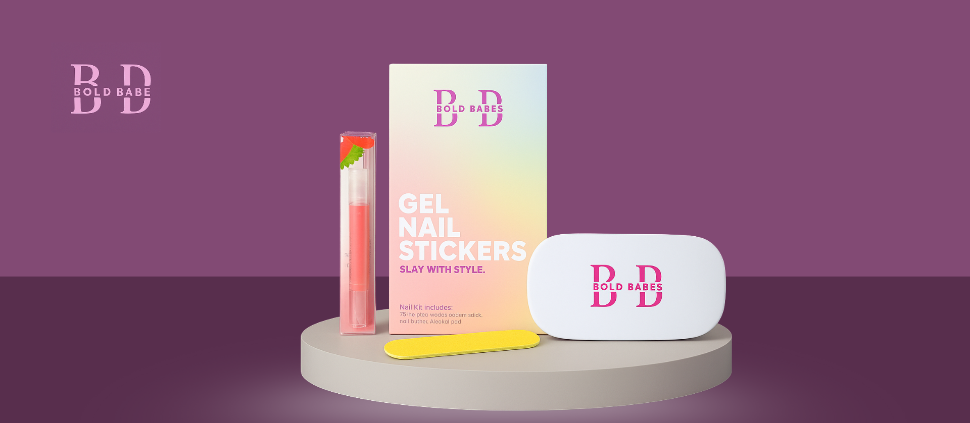 Featuring a gradient design from pink to light blue, with clear text "NAIL KIT."
